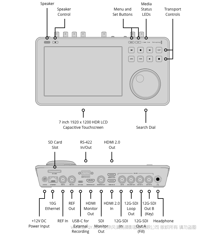1 x USB-C 3.1第一代扩展端口可用于SD、HD、2K DCI、Ultra HD及4K DCI外部录制。