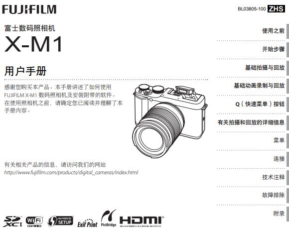 富士 XM1 X-M1 用户手册 说明书下载 使用手册 pdf 免费 操作指南 如何使用 快速上手 fujifilm_xm1_manual_zhs.pdf