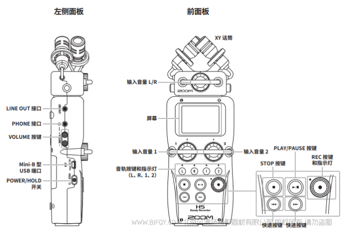 ZOOM H5 录音机 收音器 快速上手手册 说明书下载 使用手册 pdf 免费 操作指南 如何使用 快速上手