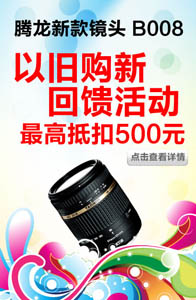为了答谢腾龙老用户,即日起腾龙公司与今日摄影网合作,针对新品B008进行“以旧购新”优惠促销活动,具体活动内容如下: