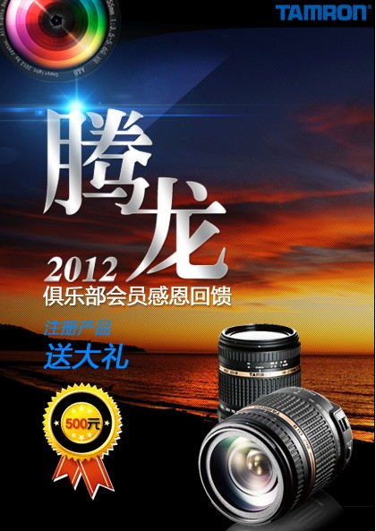 并且,在2012年10月1日-12月31日期间,凡购买腾龙镜头产品B008或者A007,并在腾龙俱乐部进行产品注册的会员,均有机会参与腾龙幸运大抽奖活动。我们将每周在这些进行B008或A007产品注册的腾龙俱乐部会员抽选1名幸运用户,获得500元现金大礼。