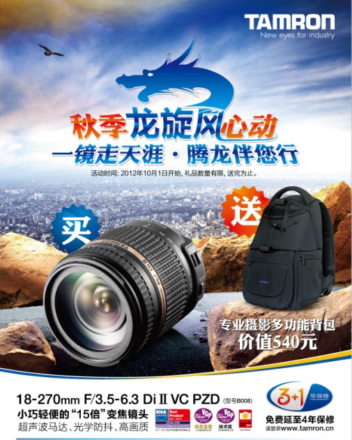 腾龙公司新闻龙旋风第四波秋季心动回馈活动——购腾龙B008镜头即送腾龙限定版专业摄影多功能背包
