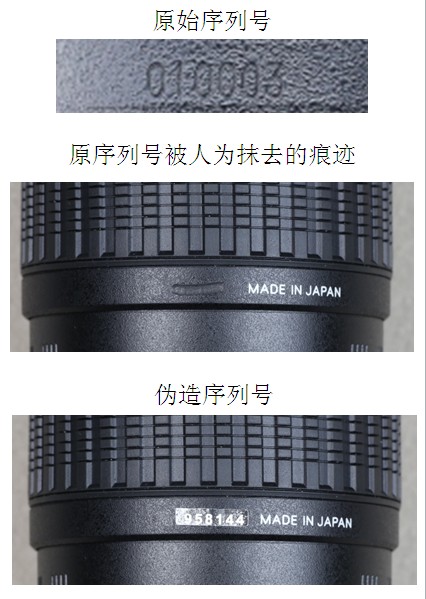 近期,在美国、欧洲、中国等国市场上出现激光序列号被人为抹去或恶意篡改的腾龙镜头。此类镜头包装中不附带或附带了伪造的保修卡。