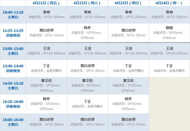 与以往不同的是,为了让大家更好地了解我们腾龙镜头,学习到更专业的拍摄技巧,今年更是新添了12人的讲座区域,多位专业摄影师为大家带来每天多达7场的摄影讲座,一定会让您大呼过瘾。