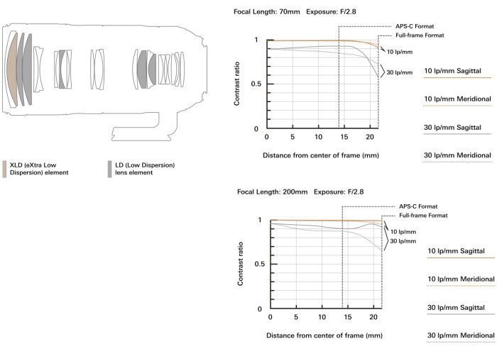 针对现有型号A009的光学构造进行了重新设计,全焦段拥有超越以往的解析力与对比度的同时,出色虚化效果也近乎完美。镜片结构为17组23片,恰当位置配备的XLD超级低色散镜片和LD低色散镜片,较大限度抑制大光圈长焦变焦镜头中较易出现的色差,从而获得全焦段全画面均一的高画质。