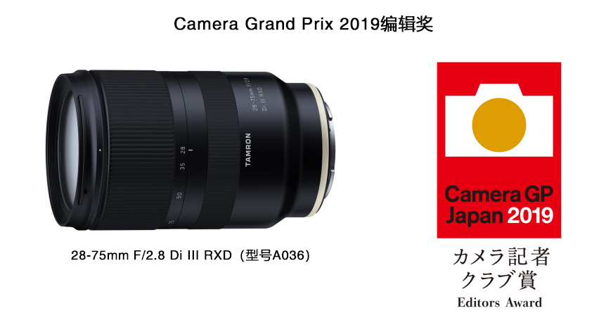 领先综合光学产品制造企业腾龙公司,推出的35mm全画幅无反相机用索尼E卡口大光圈标准变焦镜头“28-75mm F/2.8 Di III RXD(型号A036)”(以下简称A036),在日本较具权威的“Camera Grand Prix 2019”评选中,喜获编辑大奖。
