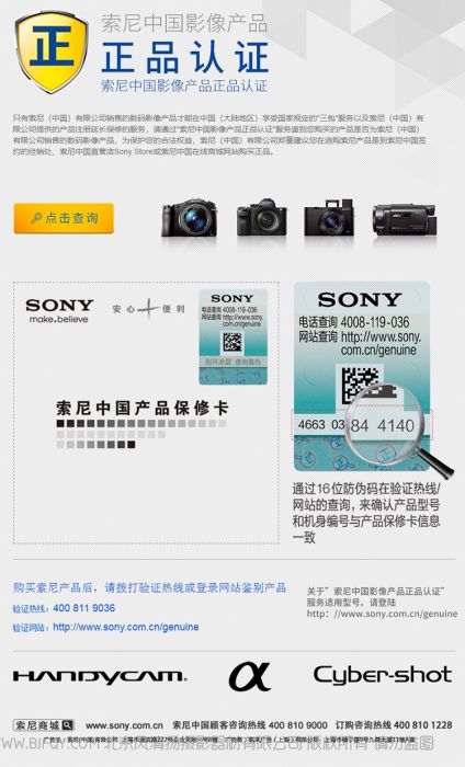 索尼 防伪查询 索尼相机 摄像机 如何查询防伪 验证正品 认证正品 如何鉴别真伪