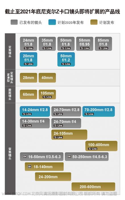 尼康 截至2021年,Z卡口规划发布信息图 信息表,尼康未来2年发布那些Z卡口镜头 Z卡口产品线规划