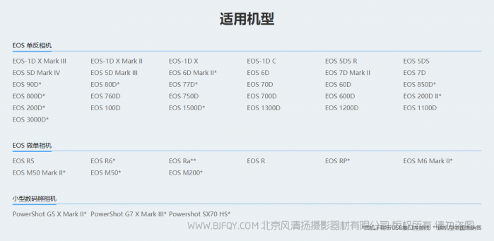Webcam这个软件并不是通用所有所有佳能的产品,但是常用的5D4、6D2、200D、200DII 等等这些都是可以运用的,下面是可以使用机型的图片。