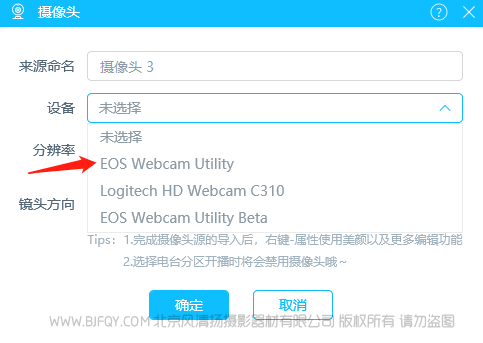 摄像头这里选择EOS Webcam Utility,然后就可以得到相机拍出来的画面了,点击开始直播就是相机所呈现的画面啦