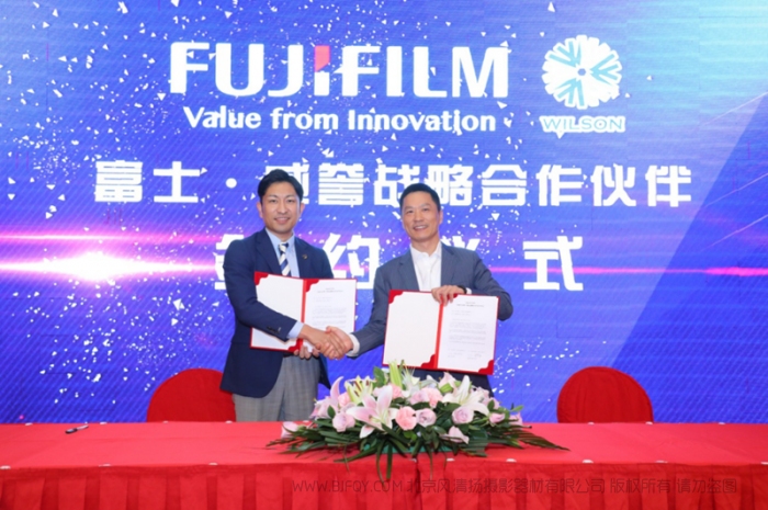 图片左:富士胶片(中国)印艺事业部总经理大木雄次,右:威誉供应链(深圳)有限公司总经理张少勇