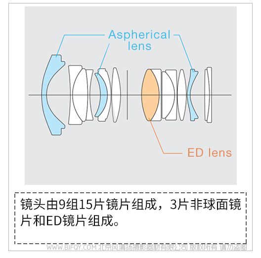 XF18mmF1.4设有9组15片镜片,基于3片非球面镜片和1片ED镜片,可较大程度减少色差和伪色。图片细节能够以更高级别的清晰度进行重现。