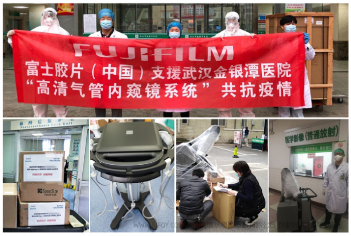 富士胶片集团深耕医疗健康领域八十余年,覆盖预防、诊断和治疗全领域,致力于研发、提供具有人性化关怀的医疗产品和服务,贡献人民健康生活。自新冠疫情爆发以来,富士胶片利用多年来在中国医疗健康领域积累的技术积累和市场开拓,及时了解一线医院的迫切需求,调配现场工程师和客服倾力援助,还为包括武汉金银潭医院在内的前线多家主力医院捐赠总额约合700万元人民币的设备,包括移动式数字X射线摄影系统、电子支气管镜系统、便携式超声影像诊断设备以及医用干式激光打印机和干式胶片等。此外富士胶片还紧急筹措了一批医用防护物资如医用外科口罩、护目镜和防护服等,帮助缓解物资紧缺。