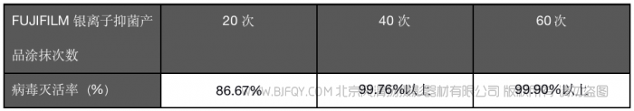 结果表明,如果每天2次持续使用FUJIFILM消毒喷雾/湿巾(含80%酒精)进行清洁,则清洁对象表面会重复涂有含银系抑菌剂的超亲水涂层,10天后86%以上的病毒可被灭活,20天后,有望使99%以上的病毒灭活。