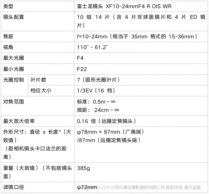 富士胶片发布XF10-24mmF4 R OIS WR新款防尘防滴超广角变焦镜头