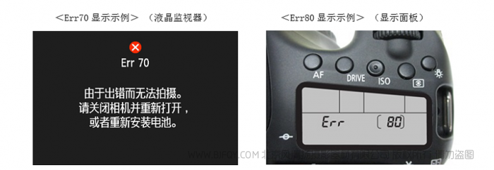 *1部分相机产品偶尔也会显示Err70或Err80,但是通过重新开启电源或重新装入电池即可恢复正常。而此次所述的是频繁发生Err70或Err80的现象。