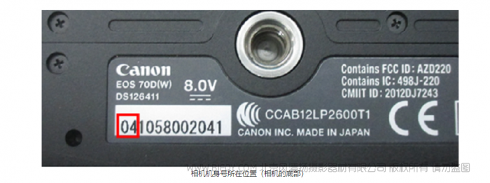 相机机身号(请参照下图)的左边开头2位数字是在“00”至“22”范围内的,且发生了上述现象的部分EOS 70D数码单反相机产品为对象产品。