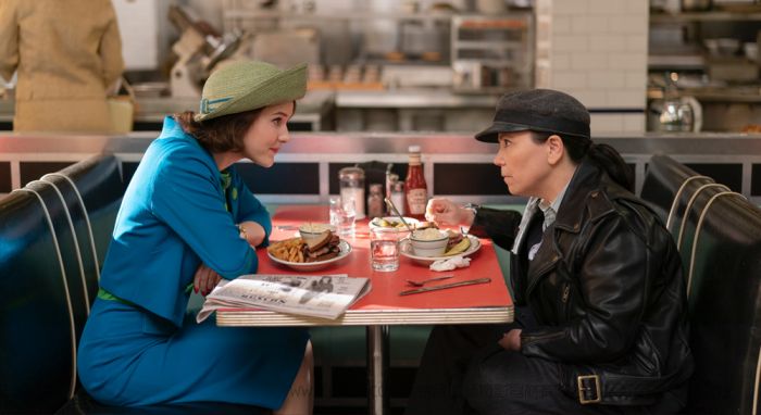 描述:图片(从左到右):Rachel Brosnahan(饰演Miriam 'Midge' Maisel)、Alex Borstein(饰演Susie Myerson)