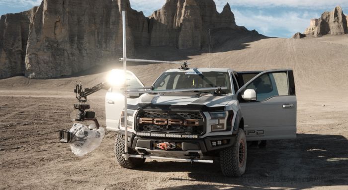 为了拍摄到具有动感的画面,Sargeant将一台URSA Mini Pro 12K作为A摄影机安装在追逐车辆上,并且将Blackmagic Pocket Cinema Camera 6K Pro和Blackmagic Pocket Cinema Camera 4K数字电影摄影机分别安装固定在主车内部、车身外侧轮胎上方、以及轮胎下方视角进行画面捕捉。