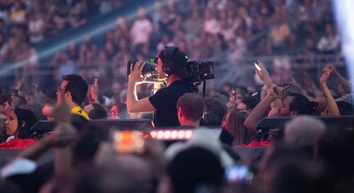 现场视频在体育馆的每个角度安装了四台URSA Broadcast G2摄影机,并围绕舞台的中心安装了三台URSA Mini Pro 4.6K G2。另外两台URSA Mini Pro 4.6K G2部署在安全护拦内用于手持拍摄,所有摄影机都通过SMPTE光纤连接来实现传输视频、供电和对讲。