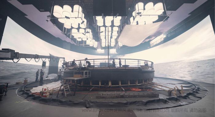 为了满足《1899》独特的叙事需求,团队搭建了巨大的270度圆形LED墙“Volume”,旋转拍摄角度可达360度。