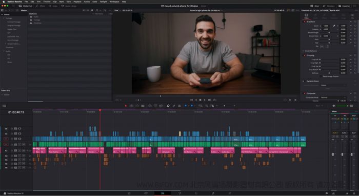 在较近制作的一支名为“I Use a Dumb Phone for 30 Days”的视频中,D’Avella和他的团队特别赞扬了Blackmagic Design工作流程帮助他们在剪辑流程中节省了大量时间。D’Avella解释说道:“这类视频很难剪辑,因为包含大量不同的影像素材,包括访谈、A卷、Vlog影像、B卷、音乐和图文等。我自己拍摄完成后,可以马上与团队共享代理文件,实现远程访问。”
