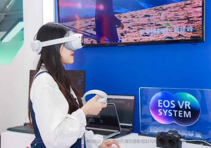 在教育数字化创新方面,佳能还带来了革新性的VR解决方案—“EOS虚拟现实系统”。该系统包含佳能首款VR镜头RF5.2mm F2.8 L DUAL FISHEYE、全画幅专微相机EOS R5/数字电影摄影机EOS R5 C以及专门开发的两款数据转换及处理软件,能够大幅简化VR拍摄和编辑流程。借助这一解决方案,VR行业工作者、专业影视创作者及VR爱好者能够更轻松、便捷地创作出高画质、立体感强、富有沉浸感的3D 180°VR视频。与360°VR拍摄相比,180°VR拍摄减少了拍摄负担,避免摄影师和阴影入镜,并且可以专注于正面(镜头方向的视点),给观看者带来更为聚焦和震撼的临场体验。在教学场景中,学生们能够在“宇宙”中学习天文知识,站在地面感受宇宙浩瀚,身临其境地学习原本枯燥、难以理解的课本知识。展会现场,参展观众可以在佳能展台现场佩戴VR头显,解锁这一富有趣味的沉浸式3D体验。