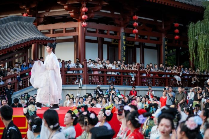 现场2000多位爱摄影、爱华服的女生参与主题为“入梦霓裳游园会”的沉浸式华服游园摄影活动