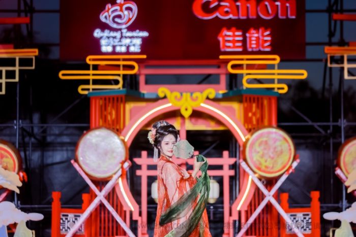 夜幕降临,歌舞表演、人类非物质文化遗产“西安鼓乐”和华服女生们感兴趣的国风华服T台秀轮番上演。黑夜的暗光线和舞台上五颜六色的灯光,也丝毫没有影响佳能相机的影像表现,女生们兴致盎然地持续记录着高还原、高画质的清晰画面。