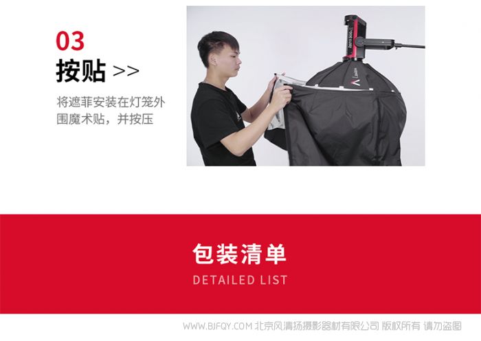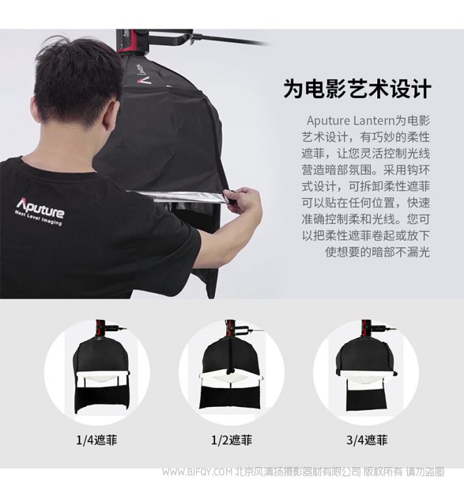 大面积柔光更需要控制,所以爱图仕球柔灯笼含有独特的柔性遮扉。可拆卸设计能轻松贴附在灯笼上,您还可以把遮菲分角度分长度放下、卷起甚至完全去掉,轻松营造明暗对比,实现控光自由。