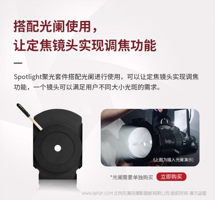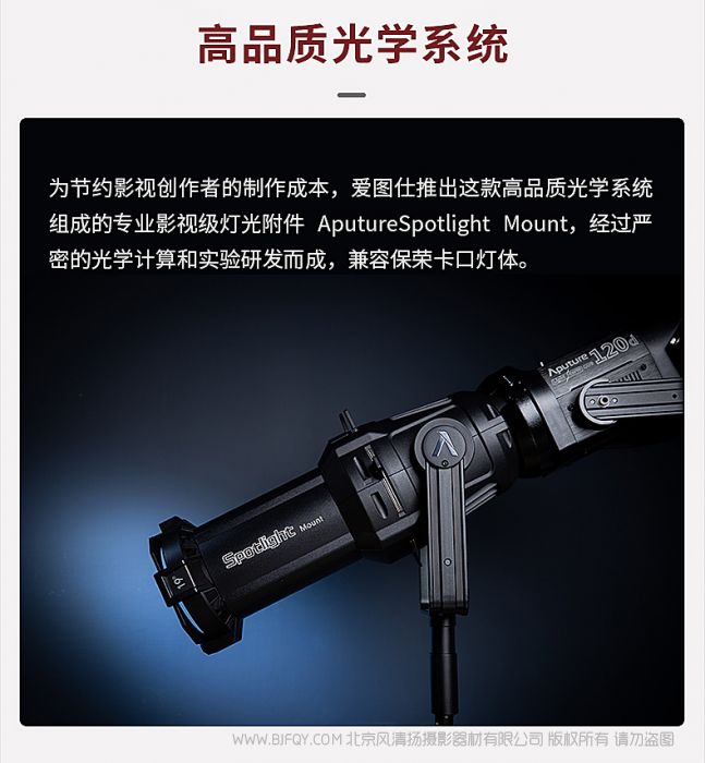为节约影视创作者的制作成本,爱图仕推出了这款高品质光学系统组成的专业影视级灯光附件 AputureSpotlight Mount ,经过严密的光学计算和实验研发而成,兼容保荣卡口灯体