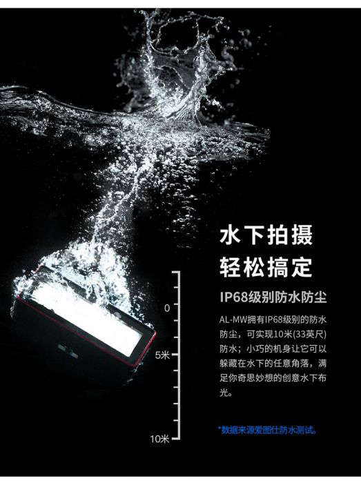 Aputure/爱图仕 AL-MW水下摄影防水补光灯 LED常亮灯人物自拍直播