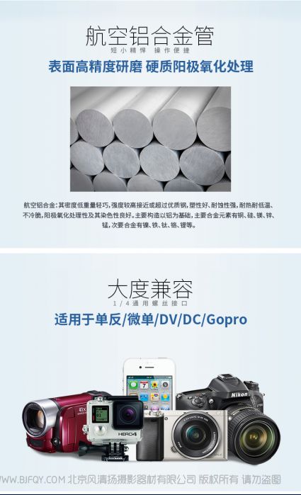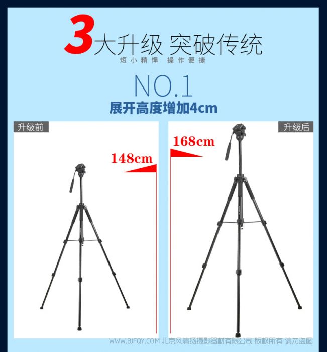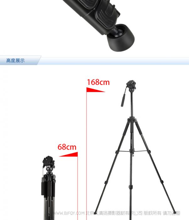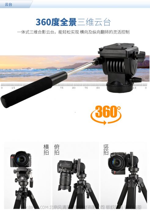 高度168CM , 云台可拆卸,配3/8转换螺丝,带指南针,