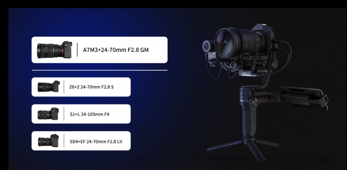 全新电机动力单元配合更高效的姿态算法。轻松驾驭A7M3+24-70mm F2.8 GM等主流微单拍摄组合,甚至可以越级搭载5D4+24-70mm F2.8的单反拍摄组合。全新自适应控制算法,一键自动识别负载重量,轻如手机,重至单反,都能迅速适配。让创作不受负载限制,尽情挥洒拍摄创意。*详见相机适配列表