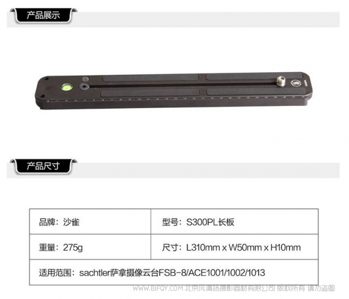 sachtler 纳伽 沙雀 S300PL 长板 加长板 30cm延长板适用拍鸟沙雀云台FSB6/8/10 萨拿ACE曼富图液压云台
