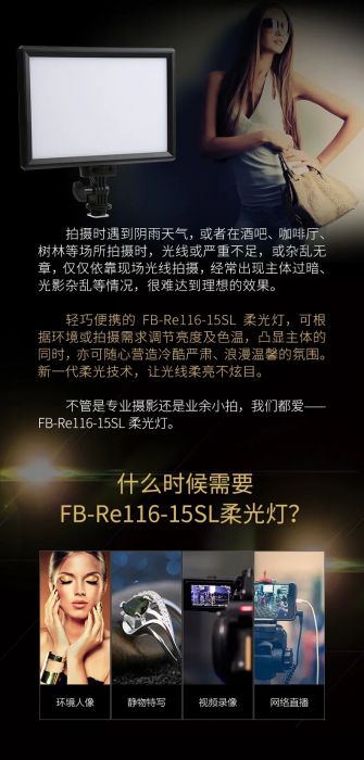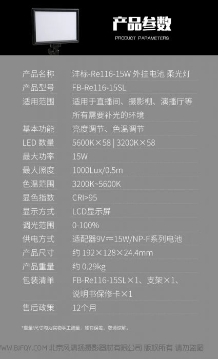 | 产品名称 | 沣标-Re116-15W 外观电池 柔光灯 |