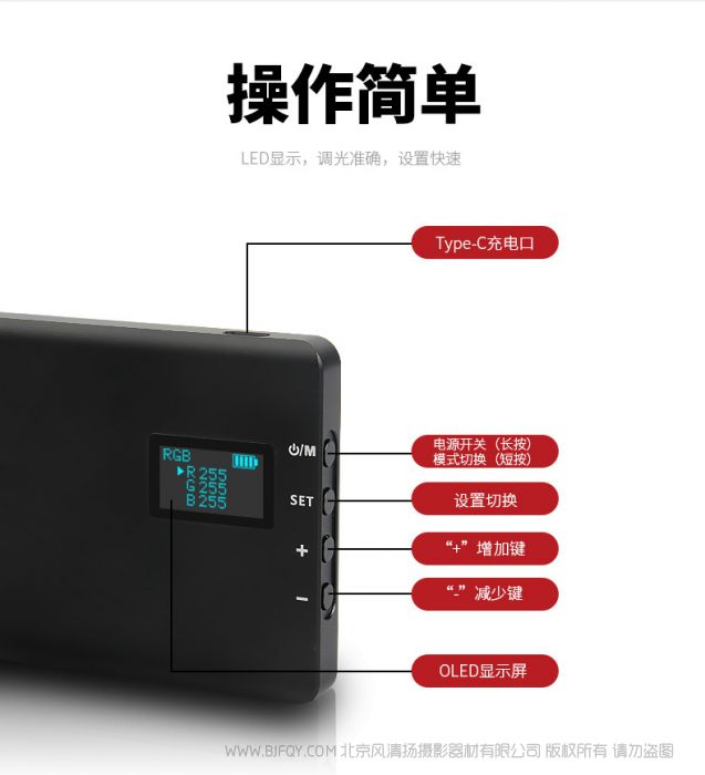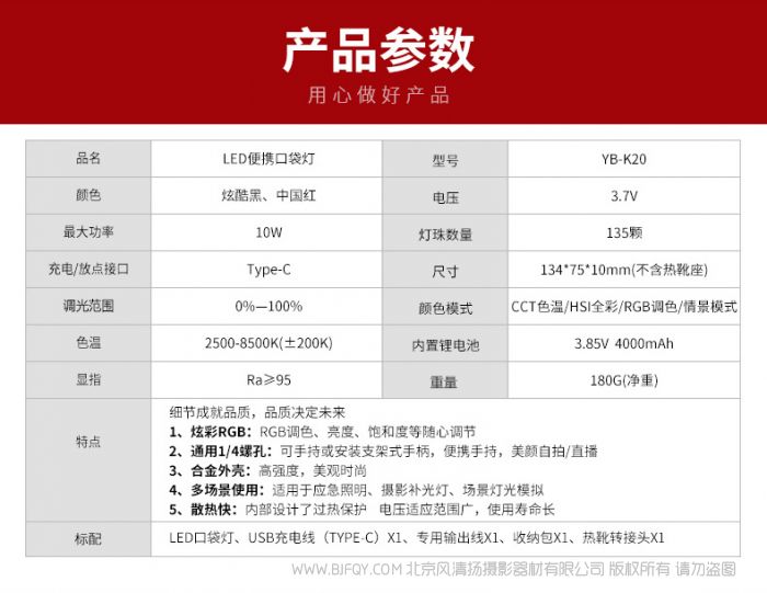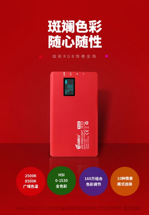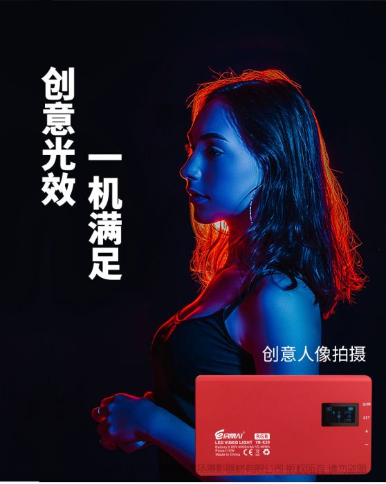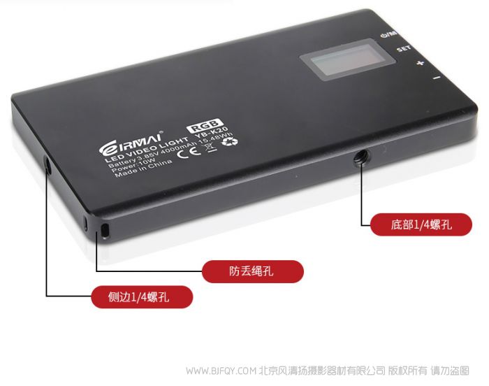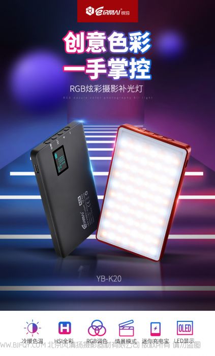 锐玛 EIRMAI YB-K20 冷暖色温 HSI全彩 RGB调色 情景模式 迷你充电宝 LED显示 Type-C 10W 便携口袋灯 4000mAh