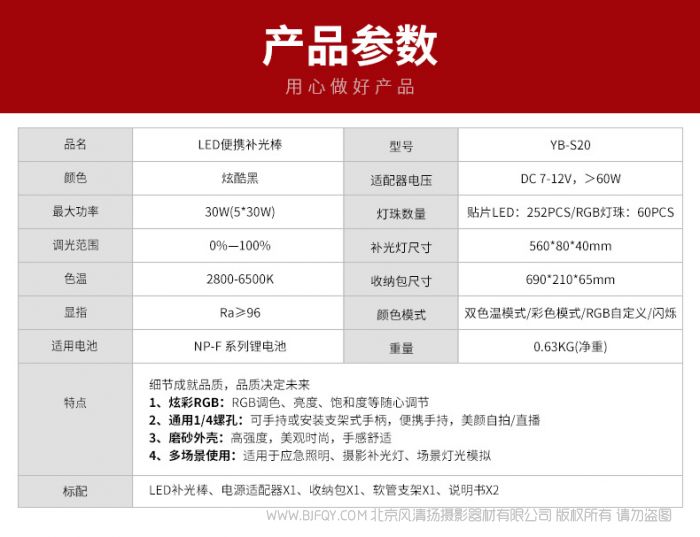 锐玛YB-S10led手持补光棒单反外拍补光灯双色温摄影灯婚庆视频摄像冰灯