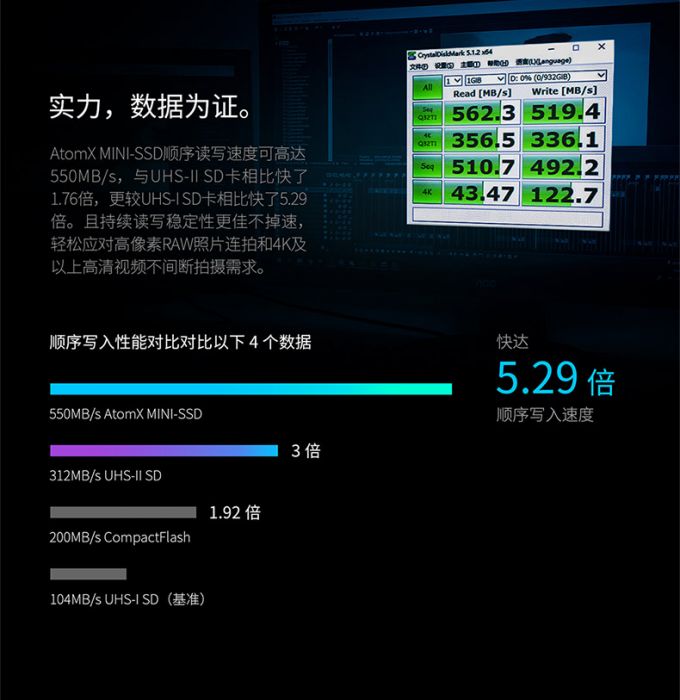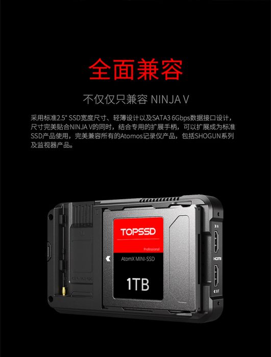 天硕 阿童木 AtomX Mini-SSD 500G 1T 2T 影像固态硬盘 NINJA V Shogun 7 全面兼容