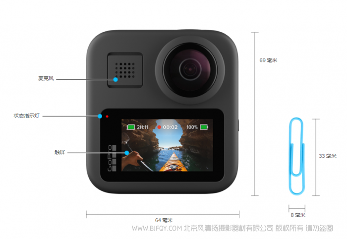 Max HyperSmooth 超强防抖视频稳定功能、屏幕快捷方式、短片、2 倍慢动作、曝光控制、1080p 视频直播