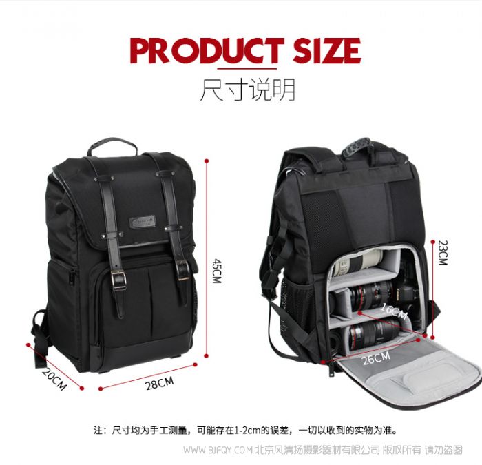 | 特点 | 细节成就品质,品质决定未来 1 点脑仓 k可放 14英寸笔记本电脑,加厚隔层起到防震作用; 2 外挂系统 可悬挂三脚架,摄影出行便利 3 上下分仓设计 既是相机包,又是休闲包,去除中间隔板获得更大空间,休闲摄影两不误 4 高弹性防水面料,具有一定的耐磨和防水能力,并且光泽良好,对抗这种性能较出色 | ||