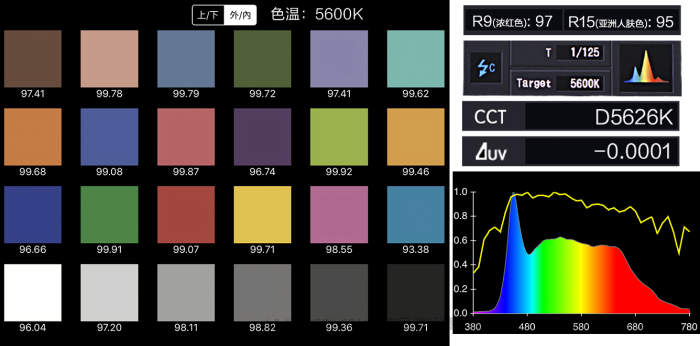 Forza 60B拥有2700K-6500K的广色温范围,覆盖钨丝灯(3200K)及标准白光(5600K),