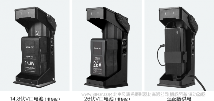 Forza 200不仅支持适配器供电,还可使用14.8伏或26伏V口电池进行供电,