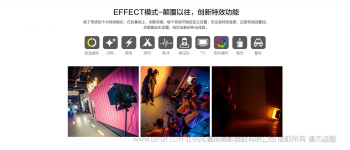 EFFECT模式-颠覆以往,创新特效功能 除了传统的十大特效模式,在此基础上,创新突破,每个特效可做自定义设置,无论是特效速度,还是特效的叠加,你都能自主设置,给你全新的布光体验。