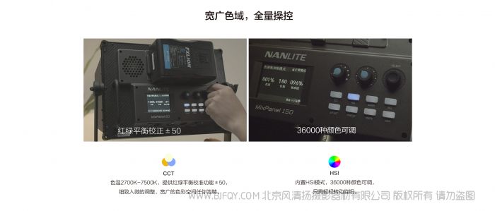 南光 nanlite MixPanel RGBW模式 HSI色彩模式 CCT双色温模式 GEL色纸模式 EFFECT特效模式
