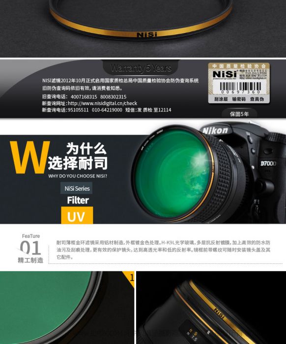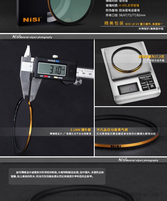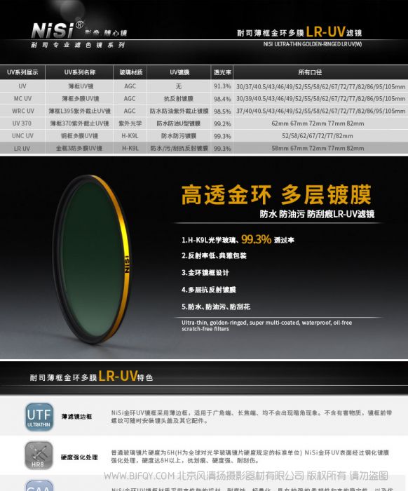 耐司(NiSi)LR UV 58 67 72 77 82mm 金环多膜 防水防污UV镜 82mm