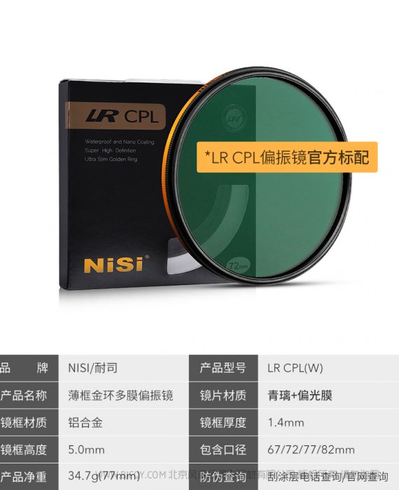 | 品牌 | nisi/耐司 | 产品型号 | LR CPL(W) |