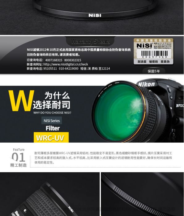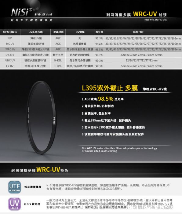 耐司(NiSi)WRC UV镜62 67 72 77mm L395紫外截止 单反相机镜头 72mm