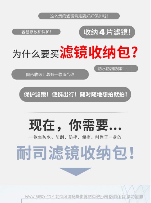 | 黄色滤镜包 | 6972949371630 | ¥- | ¥136.00 | 外壳压膜成形,结实,保护性强 每片滤镜独立区域不相互碰伤 大开口设计,方便快速拿取 防水拉链,有效保护 |