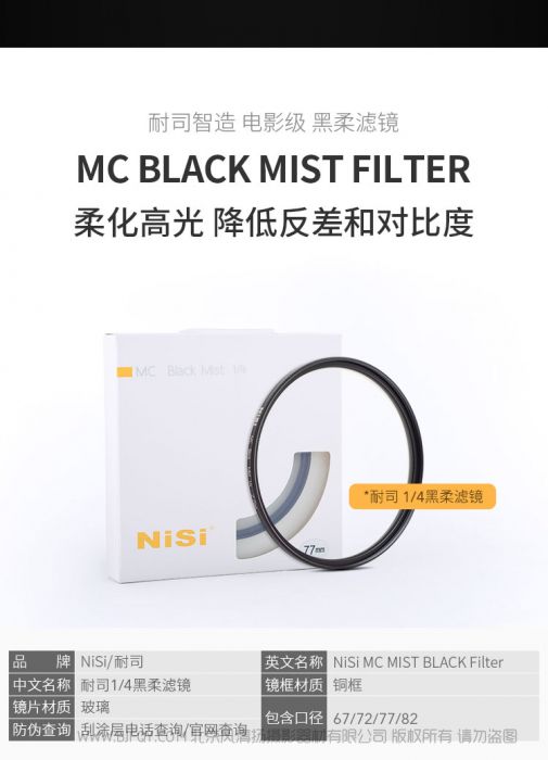 | 中文名称 | 耐司1/4黑柔滤镜 | 镜框材质 | 铜框 |